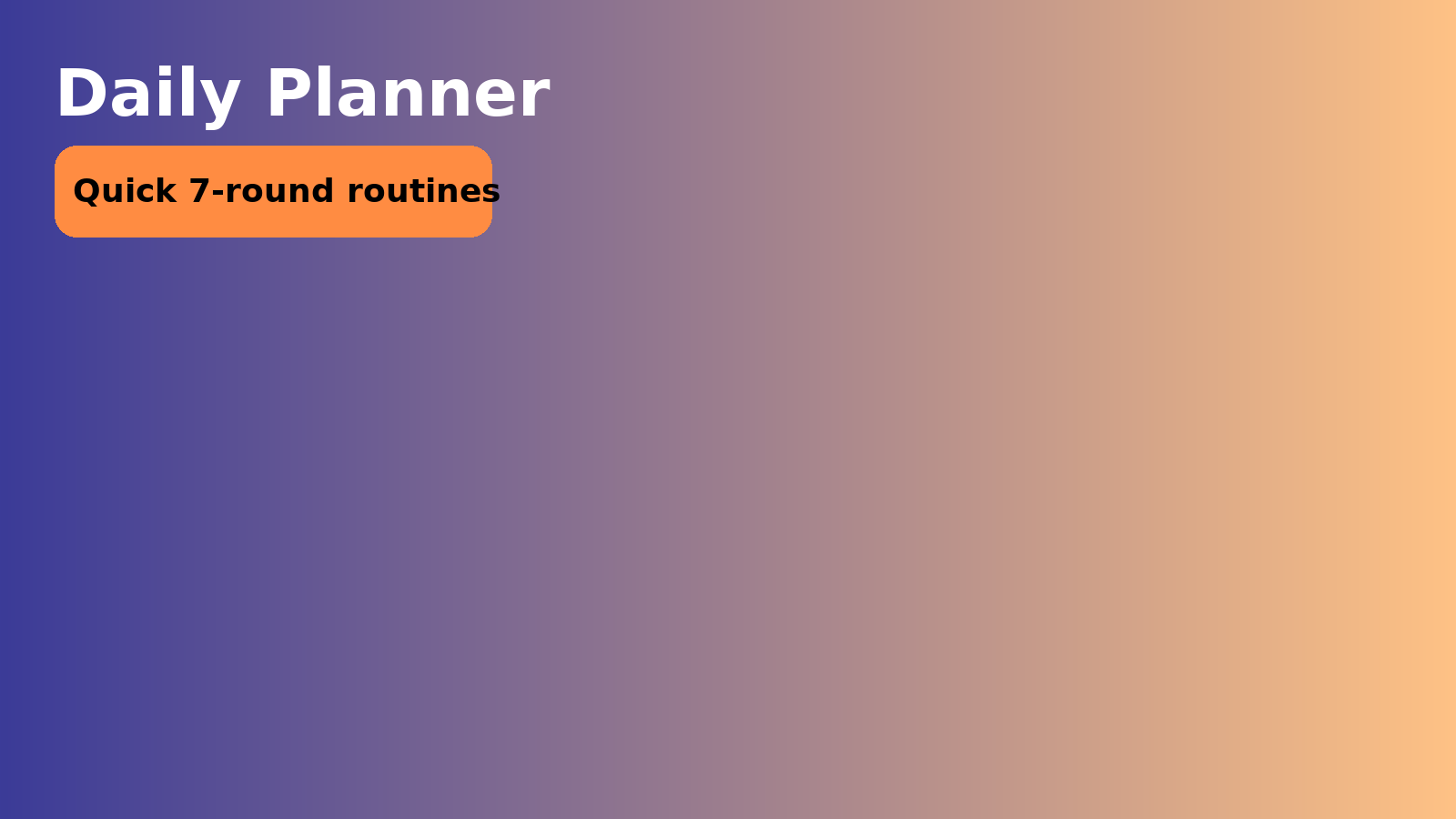 Daily Planner turns short, focused sessions into a daily habit. Follow clear cues and complete seven rounds at your own pace.
